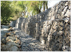石籠擋墻是石籠網(wǎng)籠子層疊堆砌的擋土建筑物。